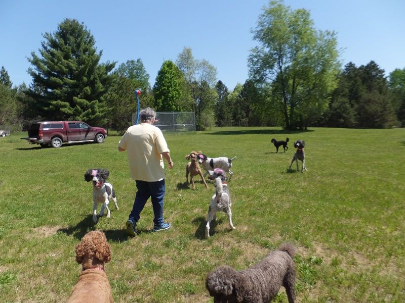 Pat’s here from Sacrameto CA to join us for the reunion and take Poppy back home with her. She loves Poppy and always has. She got her Poppy & Reggie baby Pebbles/Rosie because she adored Poppy 😀 I wasn’t looking for a home for Poppy, one day we were talking about how Poppy longs to be queen and I said something like “she’d be happier with you” and Pat was thrilled! One thing led to another and here she is taking her girl home Sunday. We’re sad but know she will LOVE being with her baby Rosie AND have a couple boys to boss around!! Our Poppins will be SO happy with her own pack of poodles! Pat will send us tons of pictures and updates!