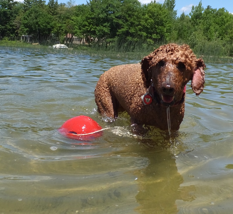 Sweet Reba! She sure loves swimming! She brings back all the balls (we throw four out at a time)that Rene and Nicole ignore. She and Parris are happy to collect the balls floating away. After a half our the old girls are exhausted! Old gals are in good shape for their age (Reba 13 this year, Parris 11 years) My precious girls!!