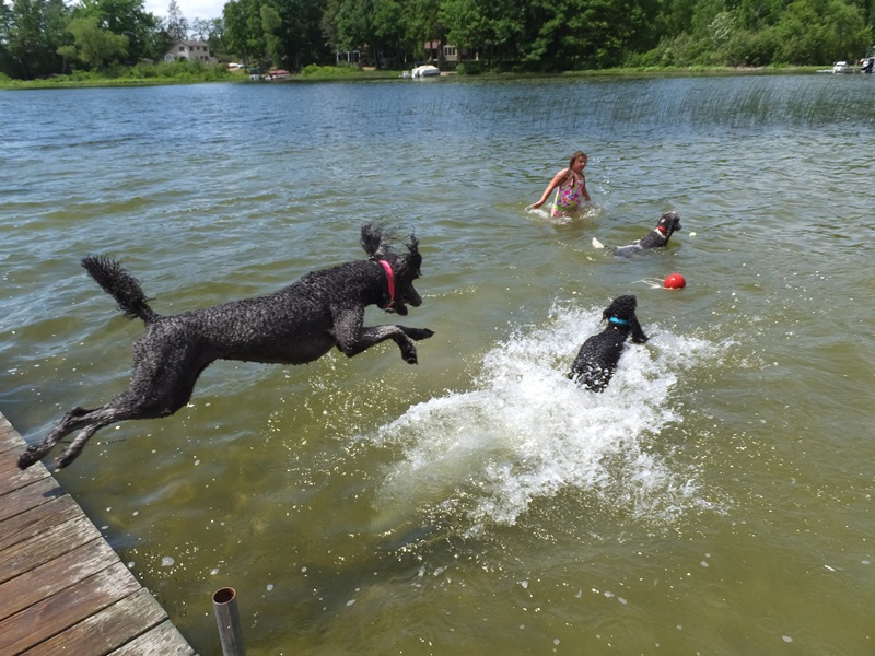 Poodle guardians. Citori and Izzie with the twins Chase and Max now three. And Monet/Jezabel (Lexie and Jack baby) getting pet/hit and hair combed/ pulled by her baby girl. Poodles are so wonderful they will endure anything from their little humans. All they ask is to be close by. Beautiful day yesterday. We played at the park (and got all dusty because it’s SO DRY) then went swimming, I love sparkling clean poodles! Lexie and Rosalie are having so much fun! I know they miss Tom and Mindy but swimming makes hem being away a little easier to endure!! Poppy is doing better everyday. Her daughter Pebbles/Rosie encourages her to play and doesnt understand why she doesnt want to. She will 😀