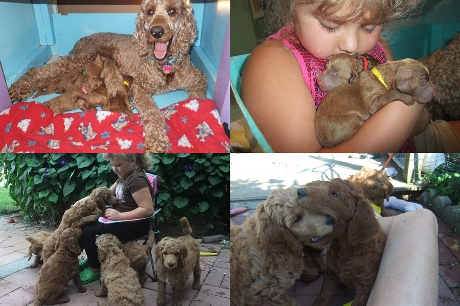 Happy THIRD BIRTHDAY to Poppy and Reggie’s first babies. FAMOUS REDHEADS!! Raggedy Ann/Ann, Pebbles/Rosie, Jessica/Sadie, Daphne/Lucille, Wilma/Stella, Ronald/Lief and Ariel!!! Poppy sure loved her babies, she’d smile when people would come to visit. She was proud of them!! She and her daughter Pebbles/Rosie are having great time together. She is queen and loves her new pack. As hard as it was to part with her, she now has what she needed to be really happy, loyal subjects (including PAT!! haha).