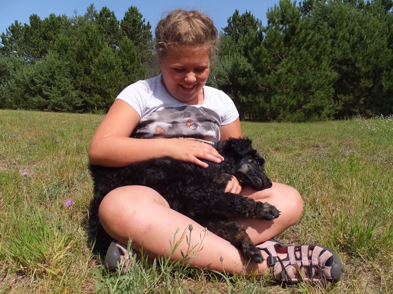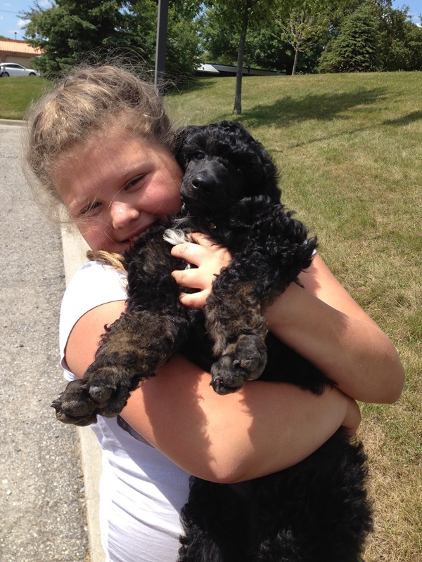 The baby is here and he is SO SWEET!! He came out of that crate with kisses for everybody! That trip didn’t bother him a bit! I had brought some cooked gizzards and he was starving, barely chewed. He ate, peed and pooped and we headed home stopping at the park so he could run a little before going home and meeting the girls. Harlee held him while everybody checked him out, he was a little nervous but took it all in stride. We fed him every hour until he finally left food in his bowl.