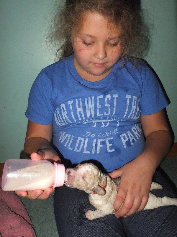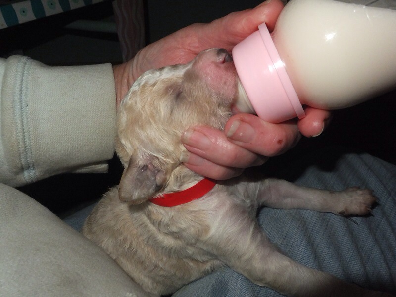 We bottle feed to make sure everybody gets enough to eat and extra puppy handling. Even before their eyes are open they crawl over to be fed. Early on they associate people with food 😀 and since they’ve never been hungry have no food issues. It’s an important part of early bonding, it’s worth the extra time and effort. PLUS we like doing it!!