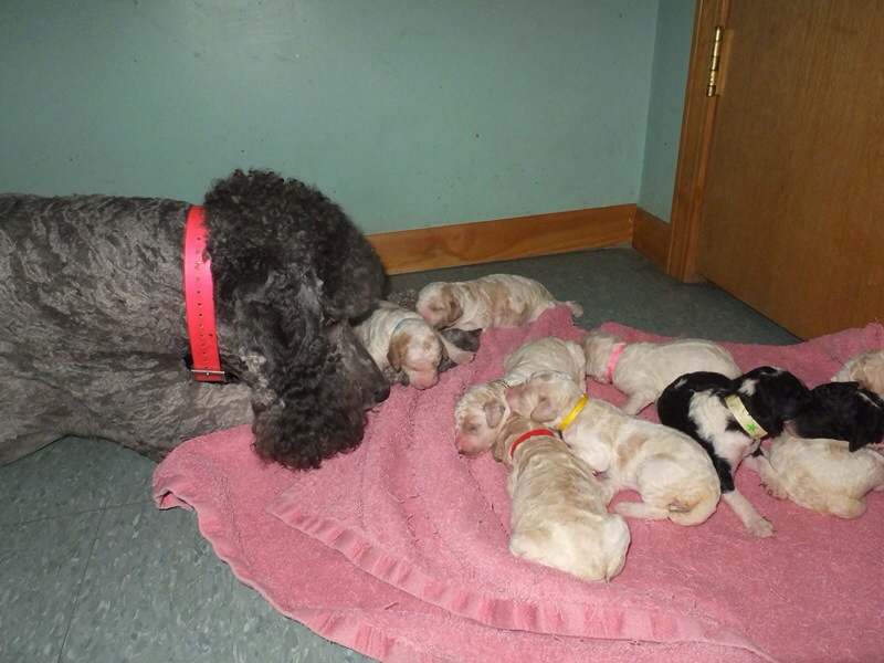 Gracie begs to see the babies. She stares at me like Patti used to when she wanted to visit somebody’s babies. Sadly I’m pretty sure she doesn’t have any babies. Years ago this same thing happened to Parris. First half of pregnancy seemed fine then suddenly she didn’t seem pregnant any more. We took her to Michigan State and she had a cyst that alter her hormonal balance once treated she went on to have wonderful healthy babies (including Graces grandpa Beemer). Once Rene has her babies we will start the process of getting to her issue so we’re ready for her next heat.