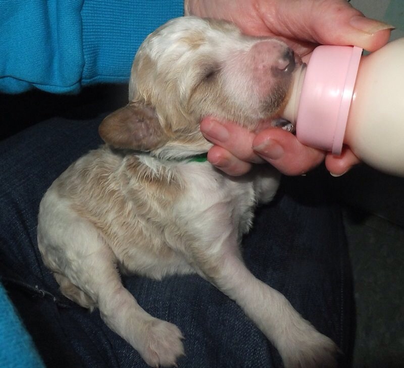 I found this on the dog bed. I can only assume Rene doesn’t like me feeding her babies haha. Well they like it, they are little chunks! I love fat healthy babies and bottle feeding also means they are handled a lot. I think it’s important they are never hungry to avoid any food issues. It takes a lot of time but worth it ! I love Earls color, it is very unique from other parti babies we’ve had. I think he’s going to be FABULOUS!!