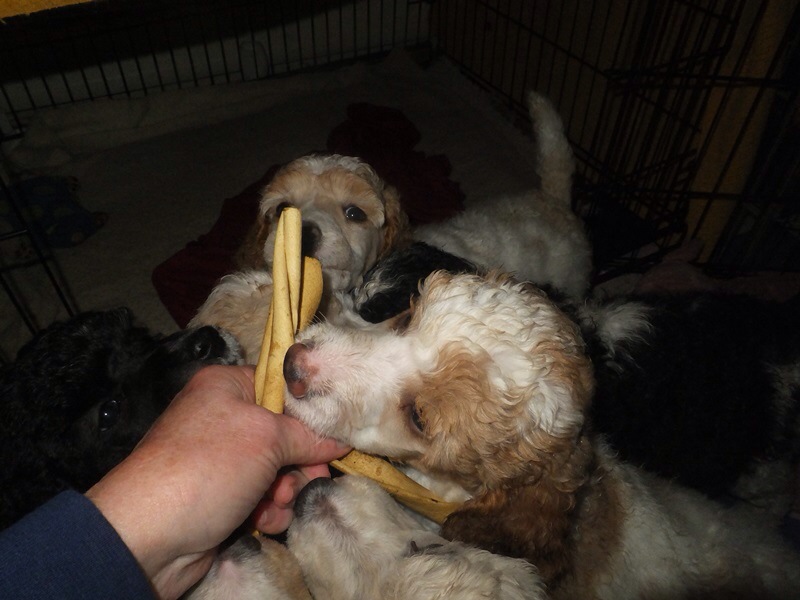 Rene’s babies are five weeks old today and so cute! They are feisty little lovers like their mom😊 I was worried about how they would adjust to being with the older pups but the little stinkers are fearless ( like their mom). I love to see how the the pups bond to a sibling. Tsarina and Ceaser are always together, Highness and Emir, Dolly and Waylon and Toby and Luke ( who are going home together). Rene is SO HAPPY when her litter mate Rosalie comes, and always tries to go home with her. Reminds me of the bond my twin grand boys have. It’s very special. I LOVE when my babies can stay together!