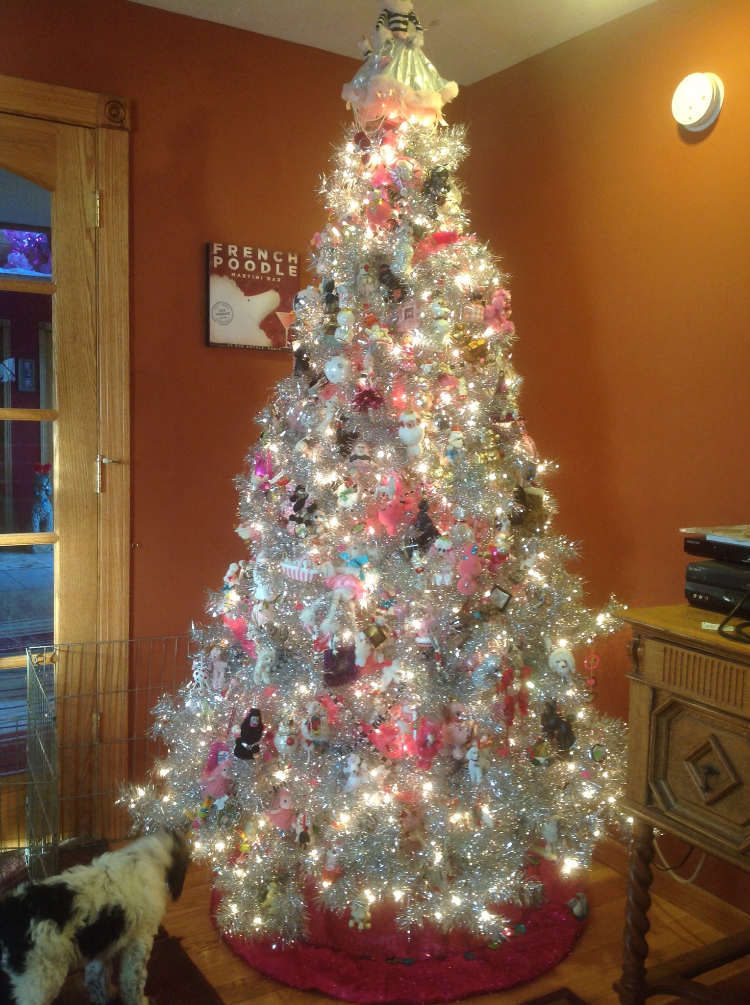 With the help of 8 puppies I put my my POODLE tree up. I got this 8 ft silver tree last year but had already put my pink tree up and didn’t want to start over so I forced myself to wait until now. I finally had to get a corral to have a puppy free zone as they were a bit TOO helpful😳 I love seeing my twenty years of ornaments. Such a treat😍 about ten years ago I realized I had enough poodles for a theme tree so put them on a green tree ( boring) so I got a white tree and couldn’t see the white ornaments, so after a few years I got a pink tree but you couldn’t see the pink ornaments, SO I decided to treat myself to an 8 ft silver tree!! I LOVE IT! It is extreme BLING!! Pictures do not do it justice!!