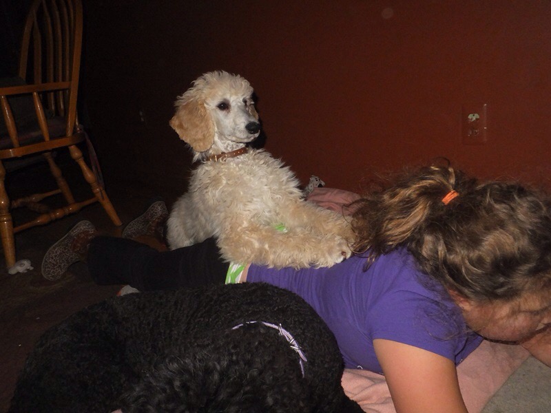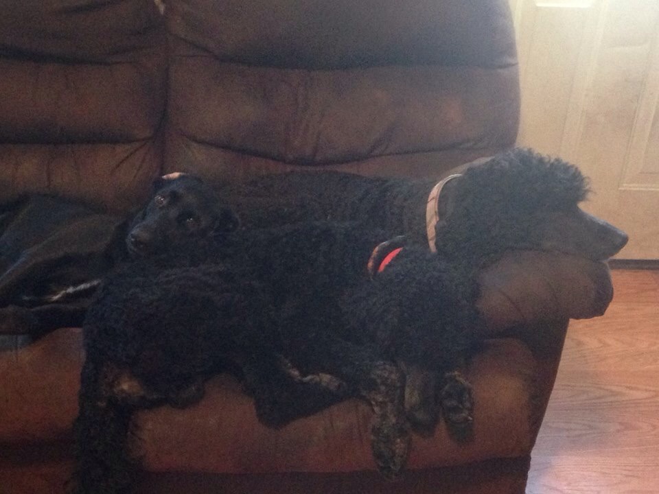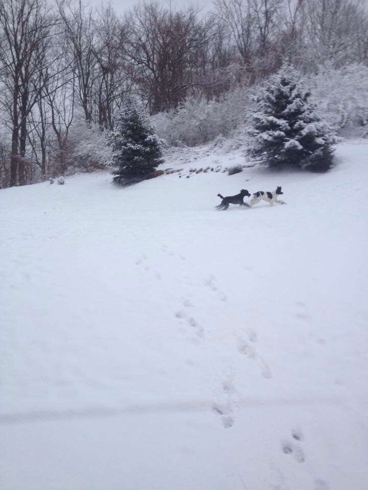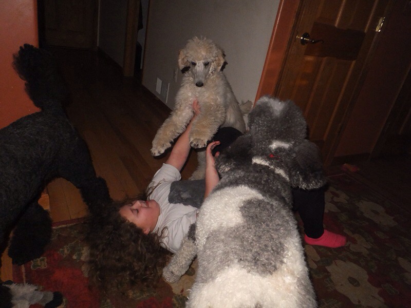 Poodles love to be wet! They love snow! Especially NEW SNOW!! LEXIE babies Dominik/Churchill and Miss Kay/Chardonnay 😀 enjoying the winter weather!! We haven’t had any snow, it’s been cold but no snow. Sometimes I’d like a little because I’m not that fond of YELLOW snow😳 All’s well here, we are enjoying our final few days with Sophie/Highness. She is SO GOOD. I take her and PARRIS with me when I go work on Bill’s house, they lay watching moving from room to room with me. She’s a perfect puppy!! I’m going to miss her pouncing and prancing😩
