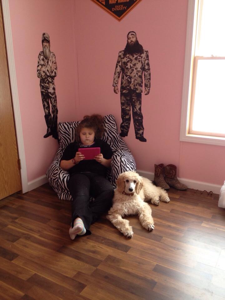 We go everyday to Bill and Harlee’s new home to get it ready to move into. It’s been quite a project as old guy bought it for young girl, young girl moves in young guy so old guy throws them both out but not before they totally TRASH the place😡 We replaced pretty much everything. It’s on 20 wooded acres in Harlee’s school district which was more important than the shape of the house. So I take Highness/Sophie and Parris with me, so she’s not spending time alone, and Parris is the best girl, just happy being with me. I like projects so I’m happy to help out while he’s at work. After awhile they think we’ve been there long enough and I get this look😀