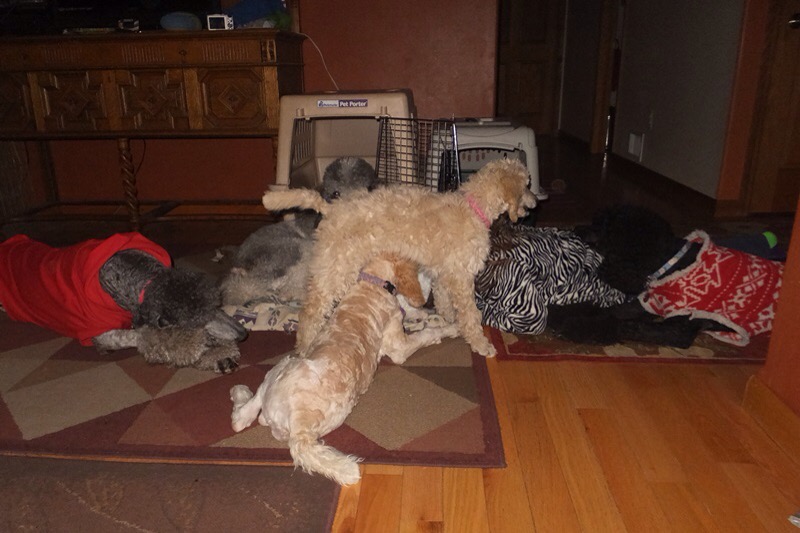 The dogs are always happy to have Harlee back. The more attention the better! Such good babies, they are sleeping until 4:30am, we go potty then back to bed until 6:30. They try to jump up on the bed, it’s so cute ( but then everything they do is cute). It’s a little warmer but windy so we don’t stay at the park long. They love the free range and chasing the big dogs. They are happy pups!