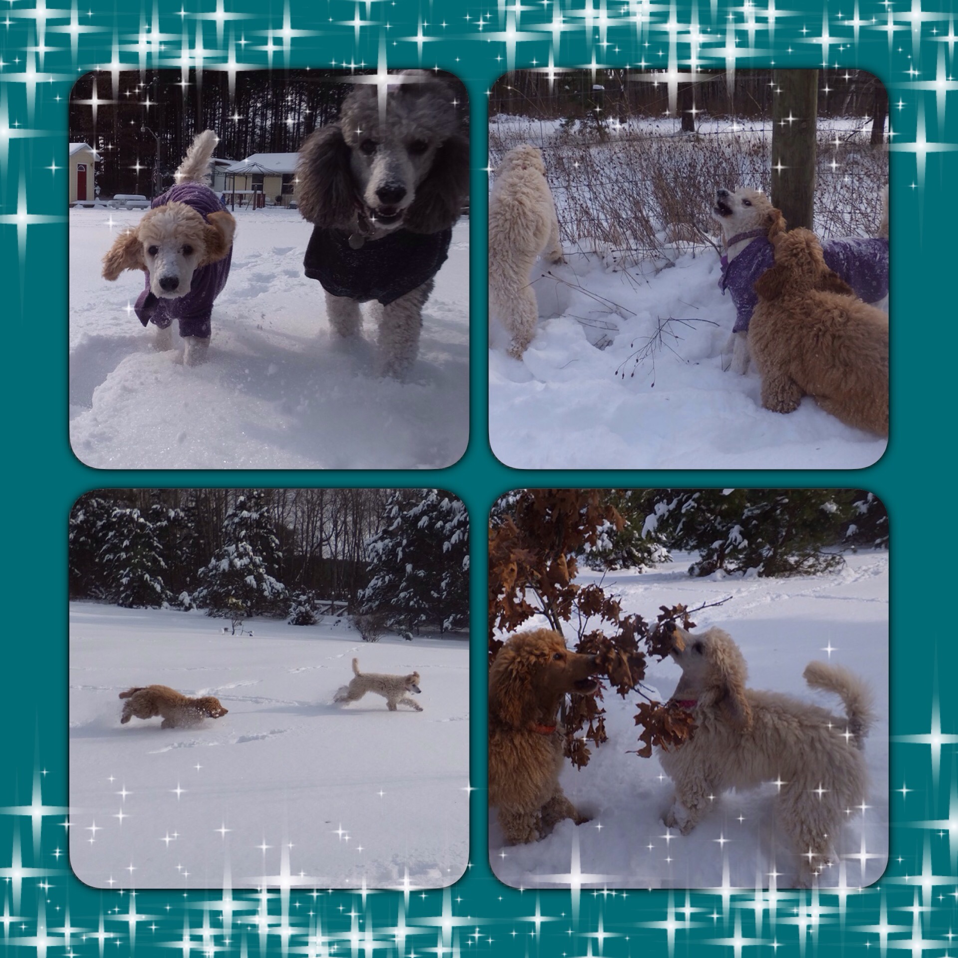 Of all the poodles I’ve had over the years Nicole and Elliot’s DOTTIE is the most expressive, she makes more noises than anyone else including an adorable purring sound ( her babies do the same thing) and her facial expressions are a hoot, you certainly knows how she feels about things😃 She tolerates Gracie’s exuberance