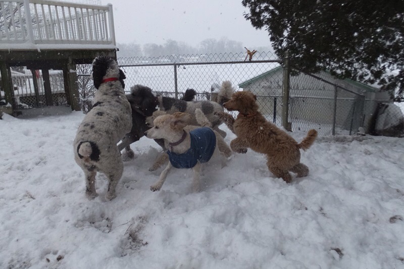 More snow but with it came 5 degrees and wind so we are not able to play at the park. Their feet just can’t take the cold ( and I can’t do 36 boots) so hopefully this cold snap won’t last long. They play in the yard for short periods but it’s not the same work out as a hour run over two acres. Harlee and I love the exercise too!