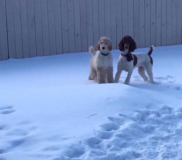 23 below today! The girls are snuggling to keep warm ( their coats are being washed). They like coats and we prefer it to panting in the house because they have too much hair! They are outside a few minutes a day so they need a haircut that makes them comfortable the rest of the time indoors. We also don’t like the wooly look😳 still cold, will be until March they are saying.