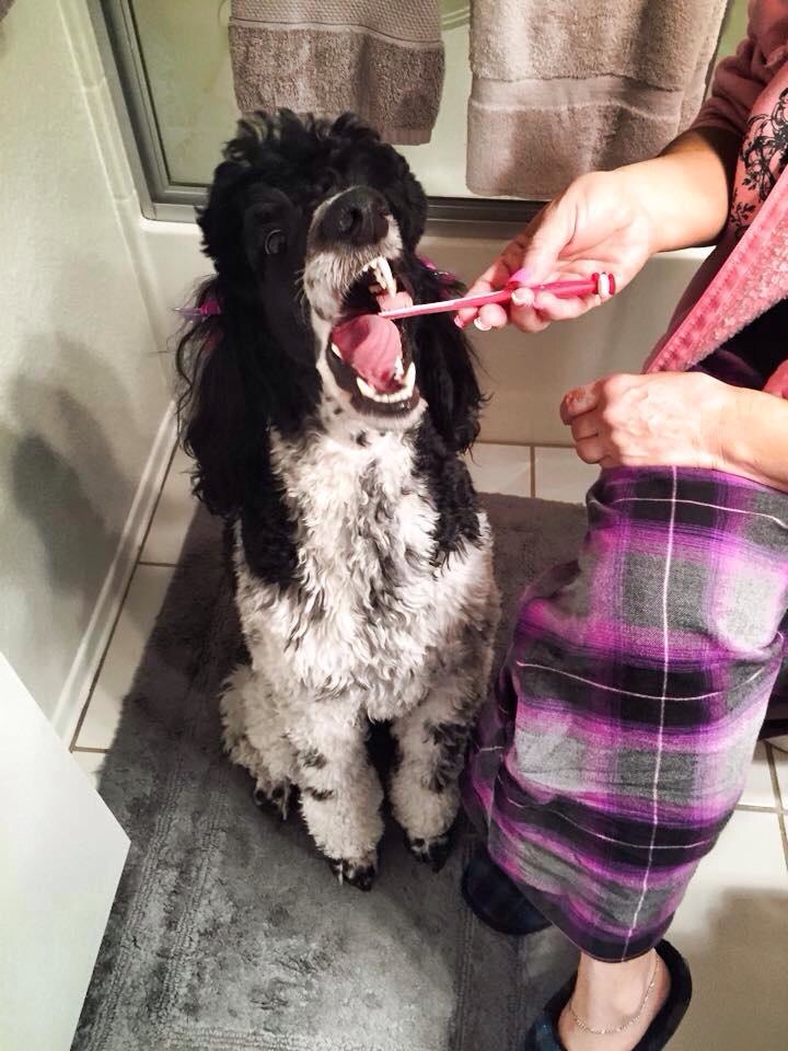 Look who LIKES her teeth brushed😀 Loretta/Lola!! The DOTTIE and WALLY babies are so eager to please😍 so sweet! We are adjusting to being puppyless. It’s been really cold so we haven’t been to the park in a few days. Bill and Harlee are moved into their new house so I’ve started painting wine glasses. They are really fun. When I have some ready I’ll put them on the Pootique 😉