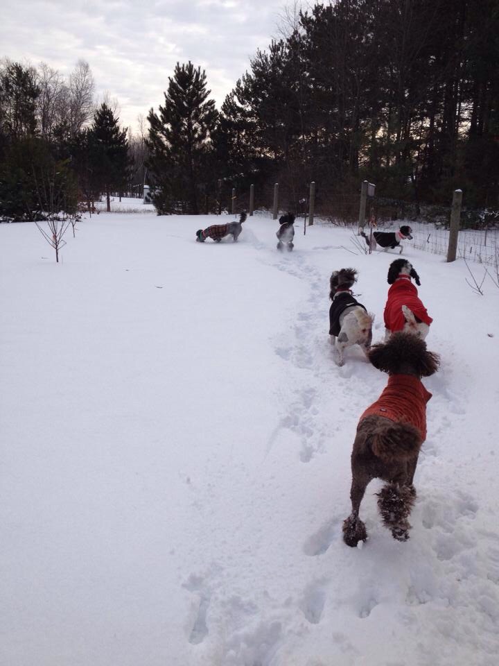 WOW we needed a good run!! Harlee had a half day of school so we picked her up at the bus stop and went to play! The snow was deeper than we expected so we ended up with boots full of snow but it’s worth it to see the girls enjoying themselves. It’s hard work trudging through that deep snow. When the dogs start picking at their feet we go home home. Harlee though grandpa should shovel us a path haha. Her daddy/ daughter dance is tomorrow, she’s so excited😀 my puppy Socializer is growing up😩