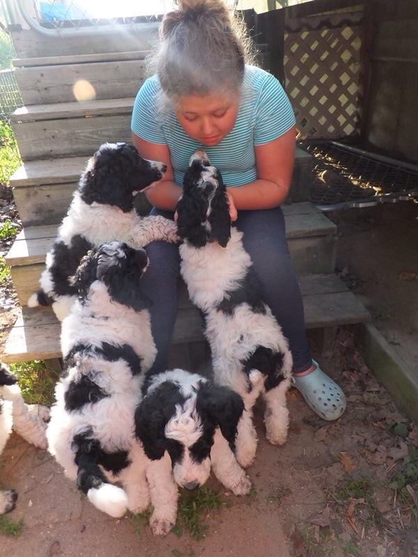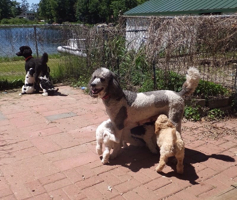 Harlee is back for the week! the babies are always happy to see her. We have so enjoyed these little stinkers. I always say I hate the day they come and hate the day they GO, LOVE EVERYTHING IN BETWEEN. Leaving us tomorrow is Puck/Manny. He has a very special role to perform as healer. His new dad lost his wife of many years on the day the pups were born. Manny will be a special friend and companion. His name Manny= Mike+Annie 😍 Mike has visited his new little guy every week (Tuesday the weekly birthday) usually with his brother Mark and has been astounded at the change from week to week 😀 they grow so fast😢sad for us, we don’t get them very long.