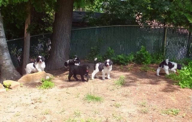 The little monkeys (aka 7 week puppies) dug under the fence of the middle size yard into the big yard and were they HAPPY ABOUT IT!! The trouble with broadening their horizons is that they are not happy ( and not quiet about IT) when they don’t get what they want. I don’t let them over there unless we are there watching and that isn’t 6 am😁 stinkers!
