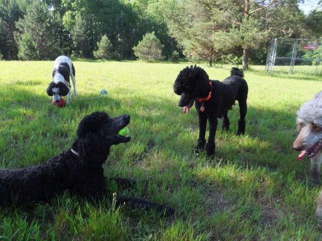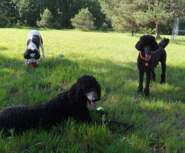Poor Shelby, she just doesn’t know what to do. She lays in the puppy room where she was born and looks so sad. She perks up at the park, but is very displaced here with all the other dogs😢 Harlee has stayed in her room ( which is now good as new thank you Larry the contractor) with her and she is much happier giving and getting kisses😘 she will eat if I feed her down there. Dennis doesn’t care where he is, he’s a happy boy eager to comply😀 loves to chase the ball and boy can he run, we love to watch him! Grace tolerates him, they’ll start playing about the time he goes home😕