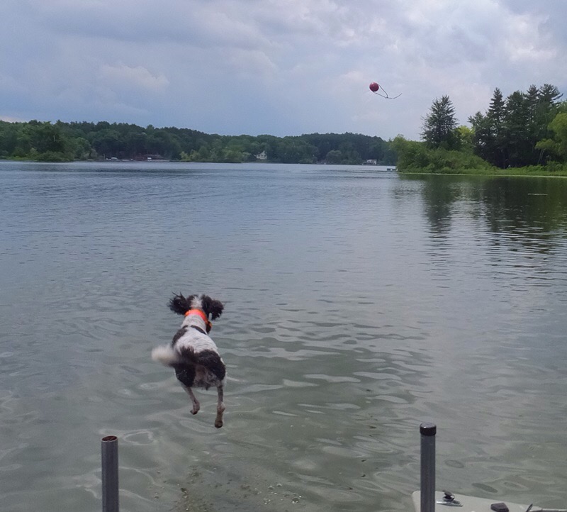 Harlee and I mowed and weed whacked the park then came home for a refreshing swim!! The dogs just love to leap off the dock!! The water is really their favorite thing. I’m sad our first few swims remembering who’s missing from last year (Reba) and always sad about the antics of GATERPOO Francis who would nip the feet of the diving dogs. Such great memories we have but they don’t replace the ache left behind by their absence. At 11 years old Nicki is going strong and could chase her beloved red ball all day. Sadly she is slowing down ( aren’t we all) and wants only soft food. I’m getting her teeth cleaned next week, I’m thinking she must have a bad tooth. As much as I hate having her undergo a procedure I think it’s really necessary😬