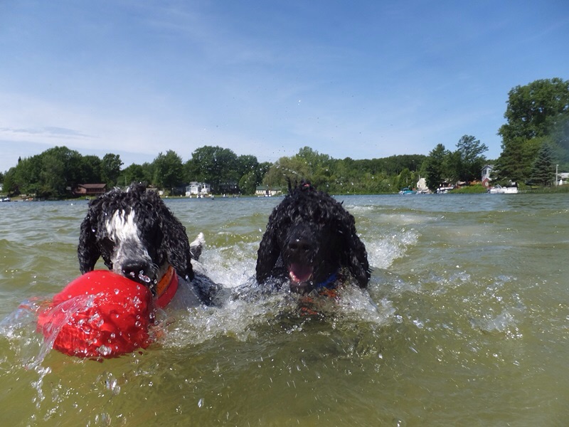 They didn’t have quiet so much energy today but still had a good time, giving it their all. Parris played a little but mostly stayed on the pontoon. I think we’re getting swim time because it’s not real hot. I can hardly lift my arm I threw those balls so much haha we were prepared this time and brought lots of balls and lunch😀 after three hours we were ALL ready to come back in. As it gets warmer I doubt we’ll be this lucky again😩