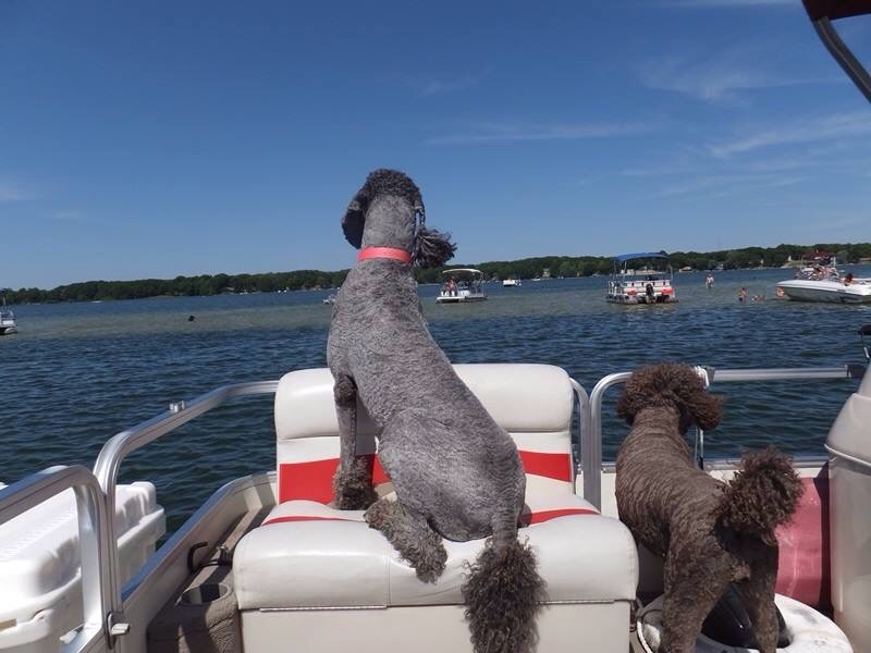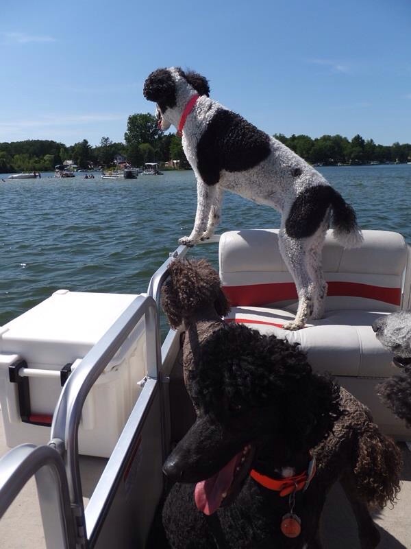 No sandbar today, too many people on the weekend. Saturday there were about forty boats and a zillion people enjoying the lake so we swam at home. The sandbar is especially fun because of the energy they burn running through the water. Add that to a boat ride and they are happy pups! Perfect summer so far!!