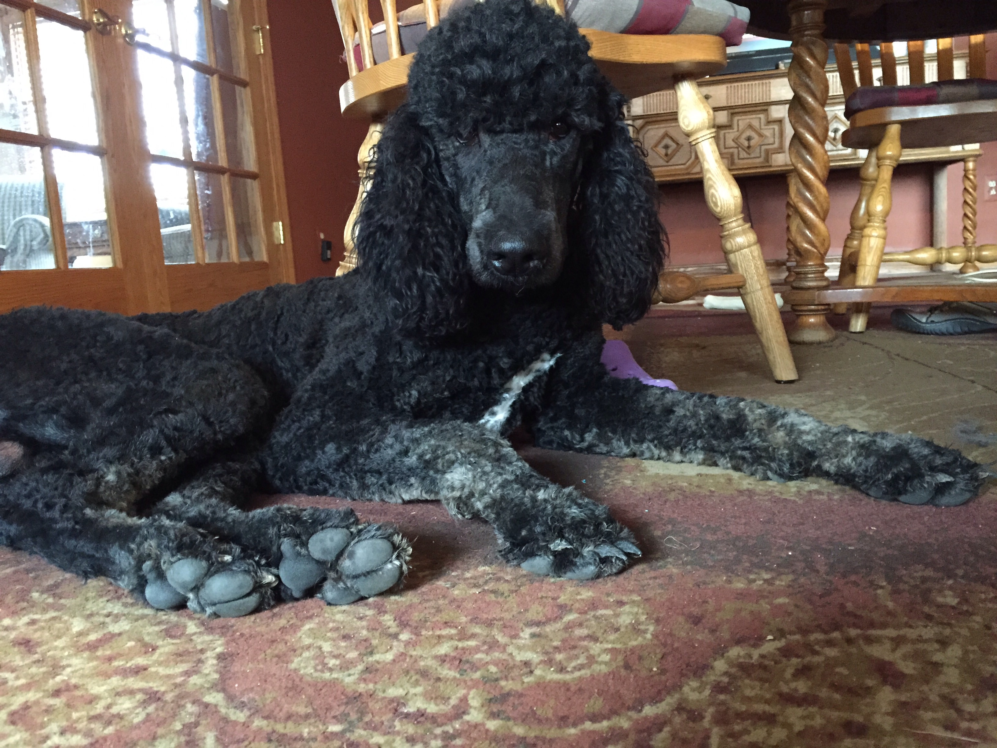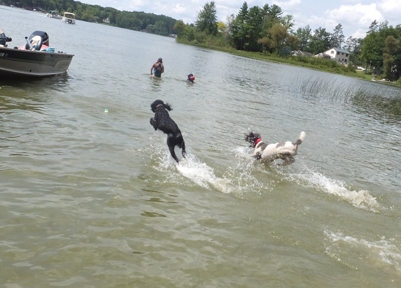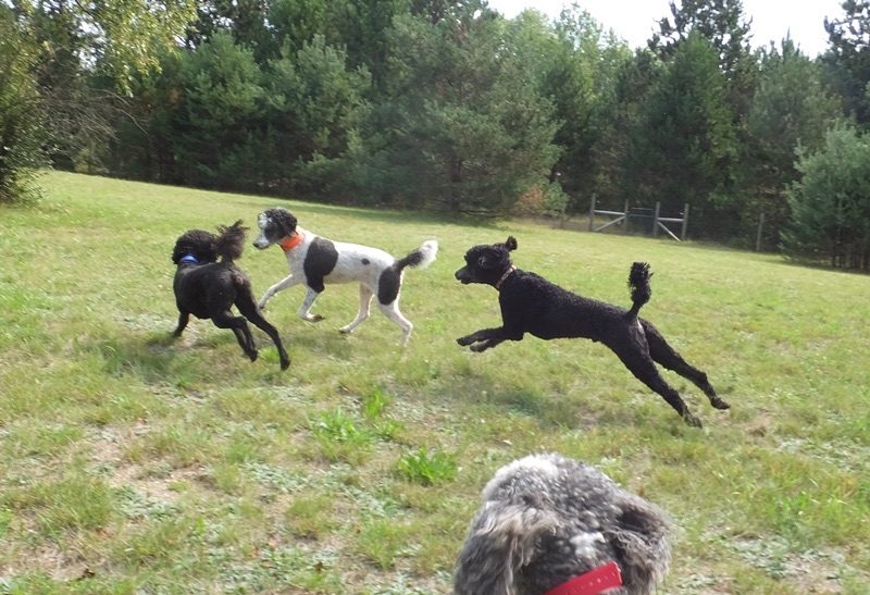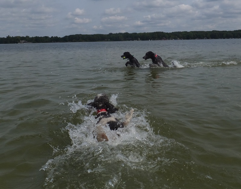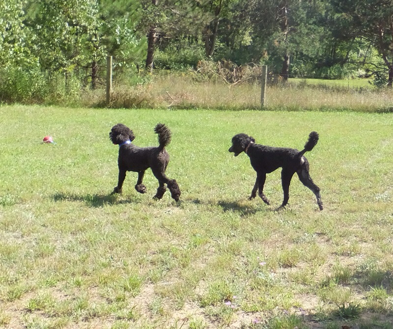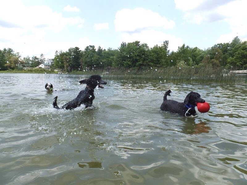 Dennis goes home tomorrow, his work is done. We made five trips to the reproductive vet in Grand Rapids to ensure we got babies this time. As it turns out Rosalie cycles five days later than average so we were missing her fertile days. Through blood work we were able to track ovulation ( I know TMI) to ensure SUCCESS!! His next mission is Grace babies ( in about 12 days, her cycle is normal). We’ll keep him busy then too swimming and playing at the park, he has a good time at poodle camp😊