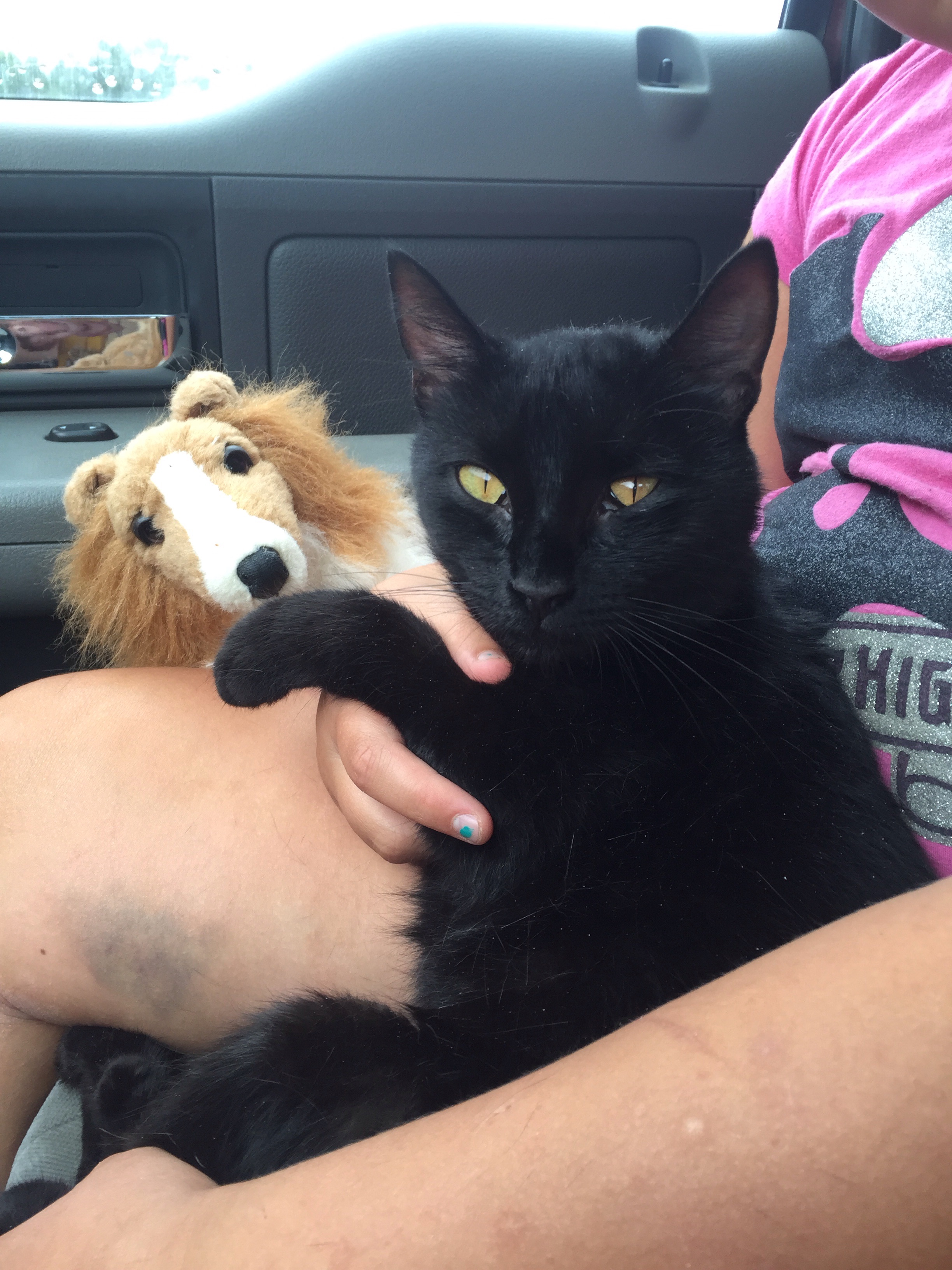 We sure missed our kitty, and she missed us. The ride home she took turns snuggling with me, then Harlee. She was already fixed ( was still $142 well spent dollars) so it just makes me nuts wondering how she ended up wandering. She was a house kitty I think, if you open the door she comes in with you. Boo Hoo I wonder if someone is missing her or dumped her 😥 no matter she seems really happy with us and we’re thrilled to have her😀 I think for the reunion I’ll confine her in the trailer so she is safe. Even the sweetest pets are idiots in a pack and that is a situation we intend to avoid!