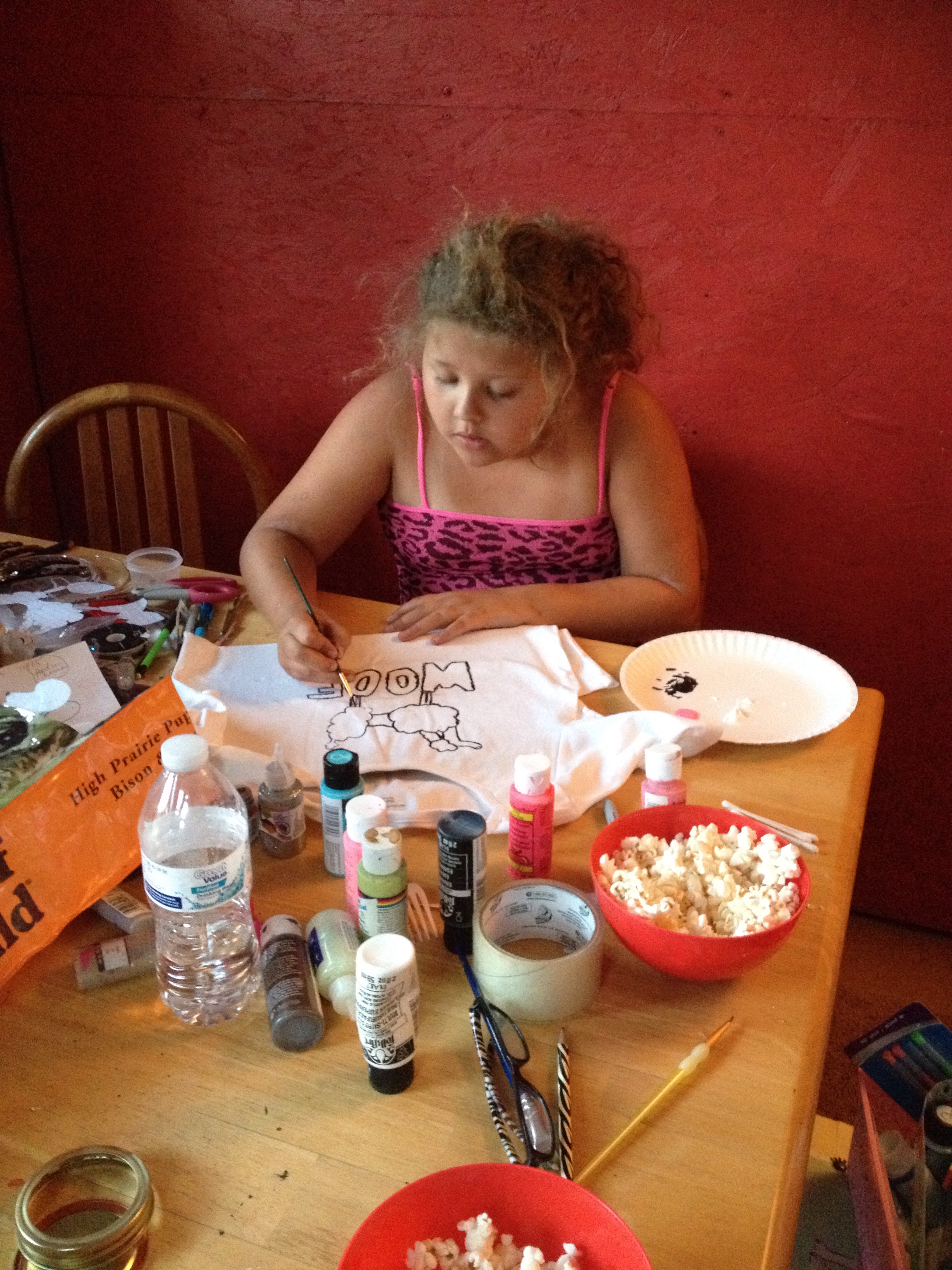 We had a fun time at the park. We made some shirts, ate Chinese followed by a root beer float and popcorn all why enjoying 1950 sci fi movies ( I have a ton of them, I LOVE THEM) so fun! Harlee wanted to make me a shirt so she designed it, drew it and painted it!! I love it, she did a really good job😀she is very proud of it and can’t wait for me to wear it😀
