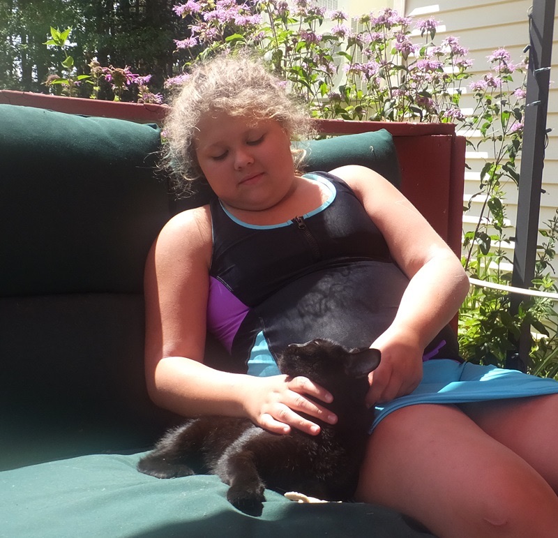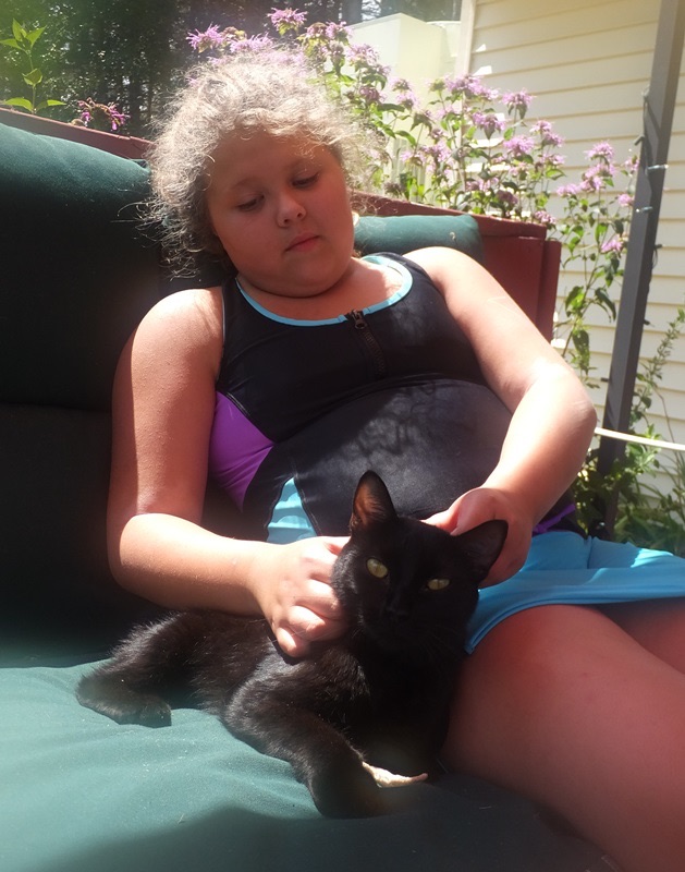 Our new mascot!! She showed up at the park a couple of days ago. She is so loving! Purrs after we feed her and follows us. Since the girls are not familiar with cats we are careful they see each other from afar😀She stays away from the fence so I’m thinking she’s not a fan of dogs. We made her a way to get in the trailer so she can be out of the weather and her food available. Pretty sure she was dropped off but lucky for us, we want her😊 we are going to get her fixed and get her shots and wormed next week.