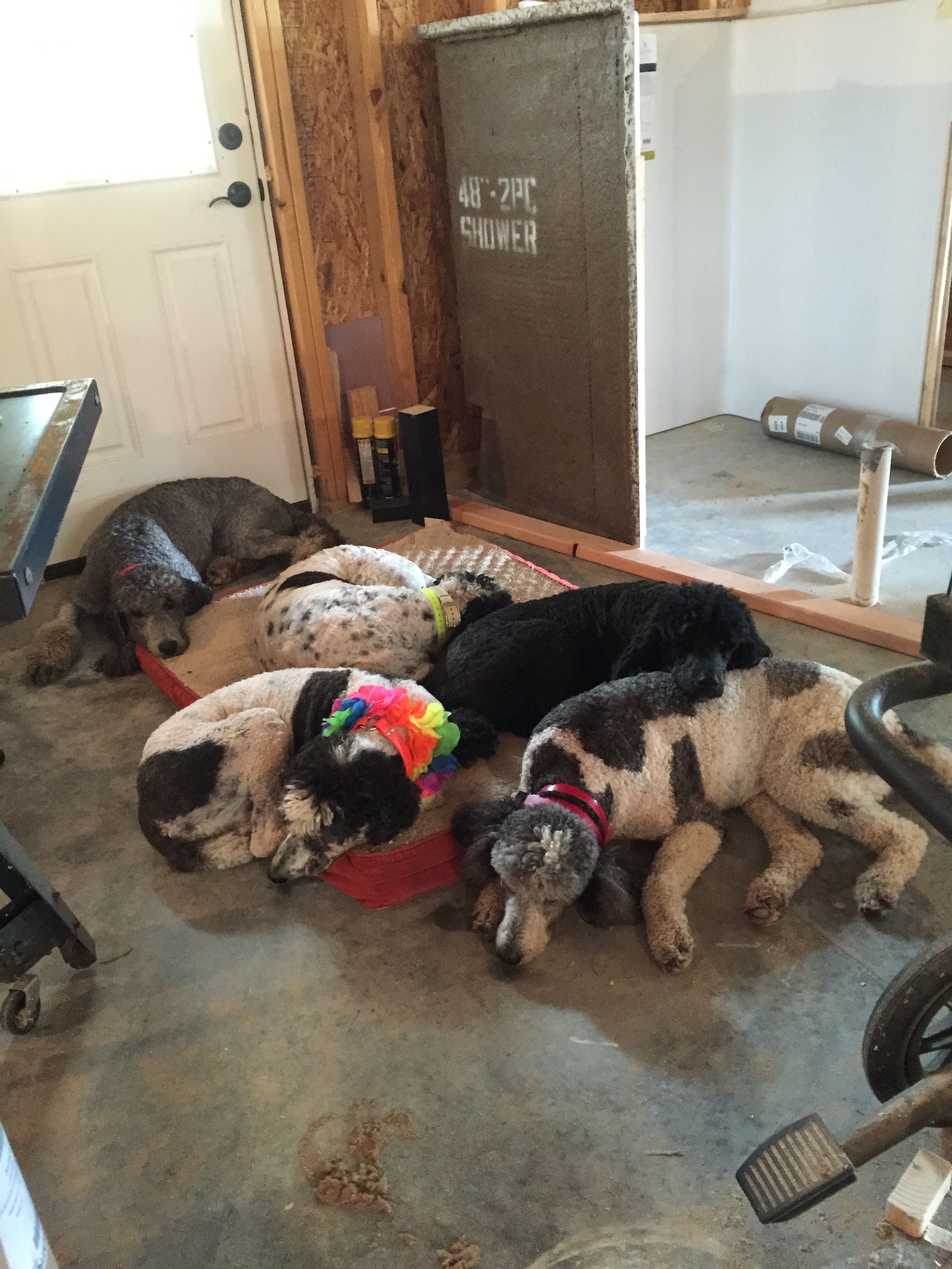 My helpers with putting up walls. They really don’t care what we’re doing as long as they can be there. Tom hurt his back so he’s only good for about four hours, which is okay I have lots of other stuff to do. Walls is one of my favorite things, house really takes shape when you have rooms😀 Thankfully it’s getting a little cooler, I’m ready for fall and pumpkin flavored everything😀