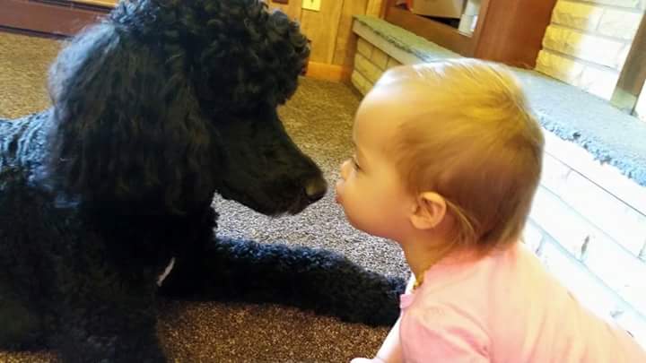 Wow does he look like his big sister Rene! He loves kids too, so happy when they visit😍 Martin/Knox was from Lexie and Wally’s DUCK DYNASTY LITTER. They are so happy with their adorable boy they are adding a Dottie baby to their family. Poodles are addicting!! And so much happier with a canine companion, it completes their world. People who love and pamper them and another dog to fill their canine needs.