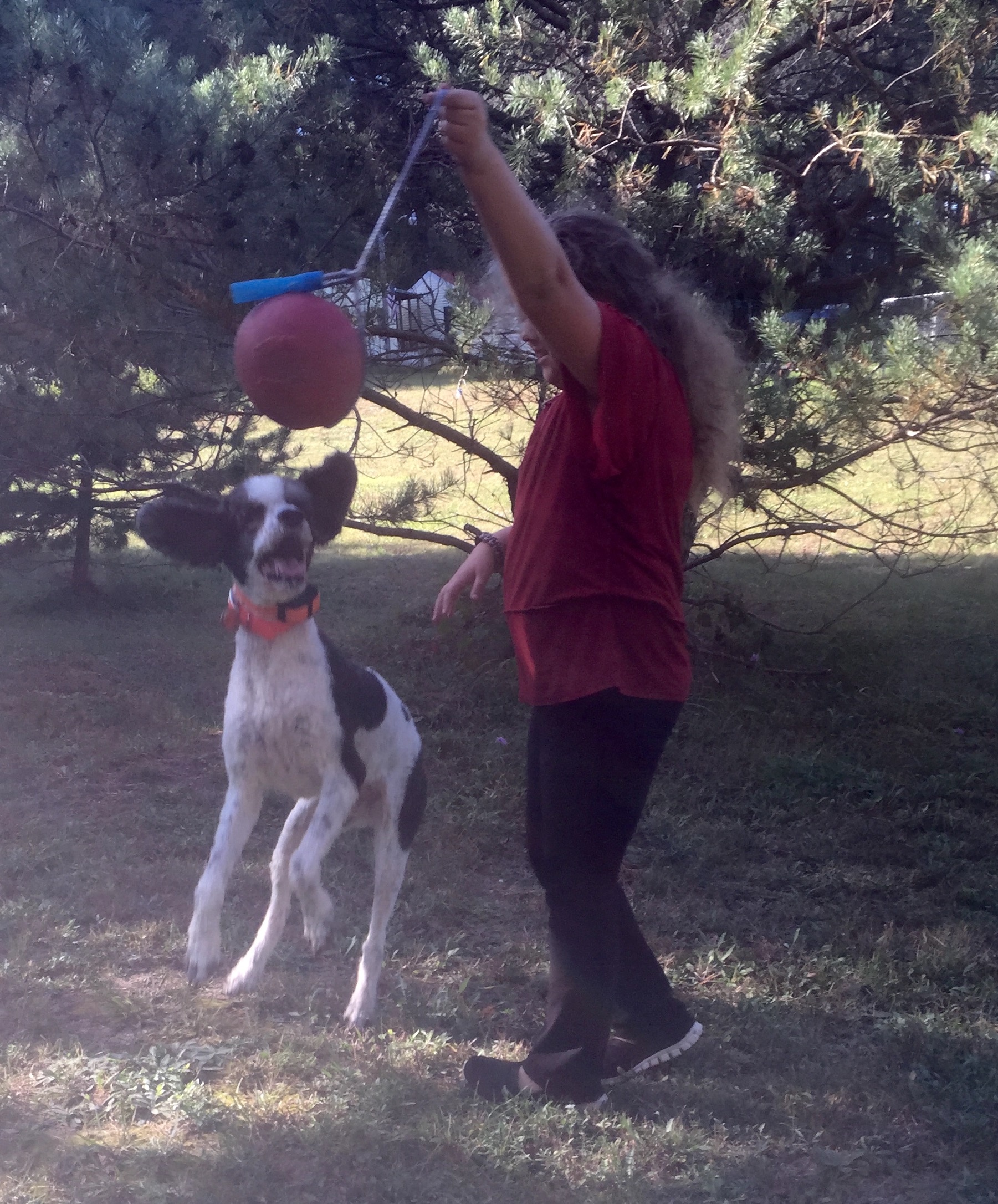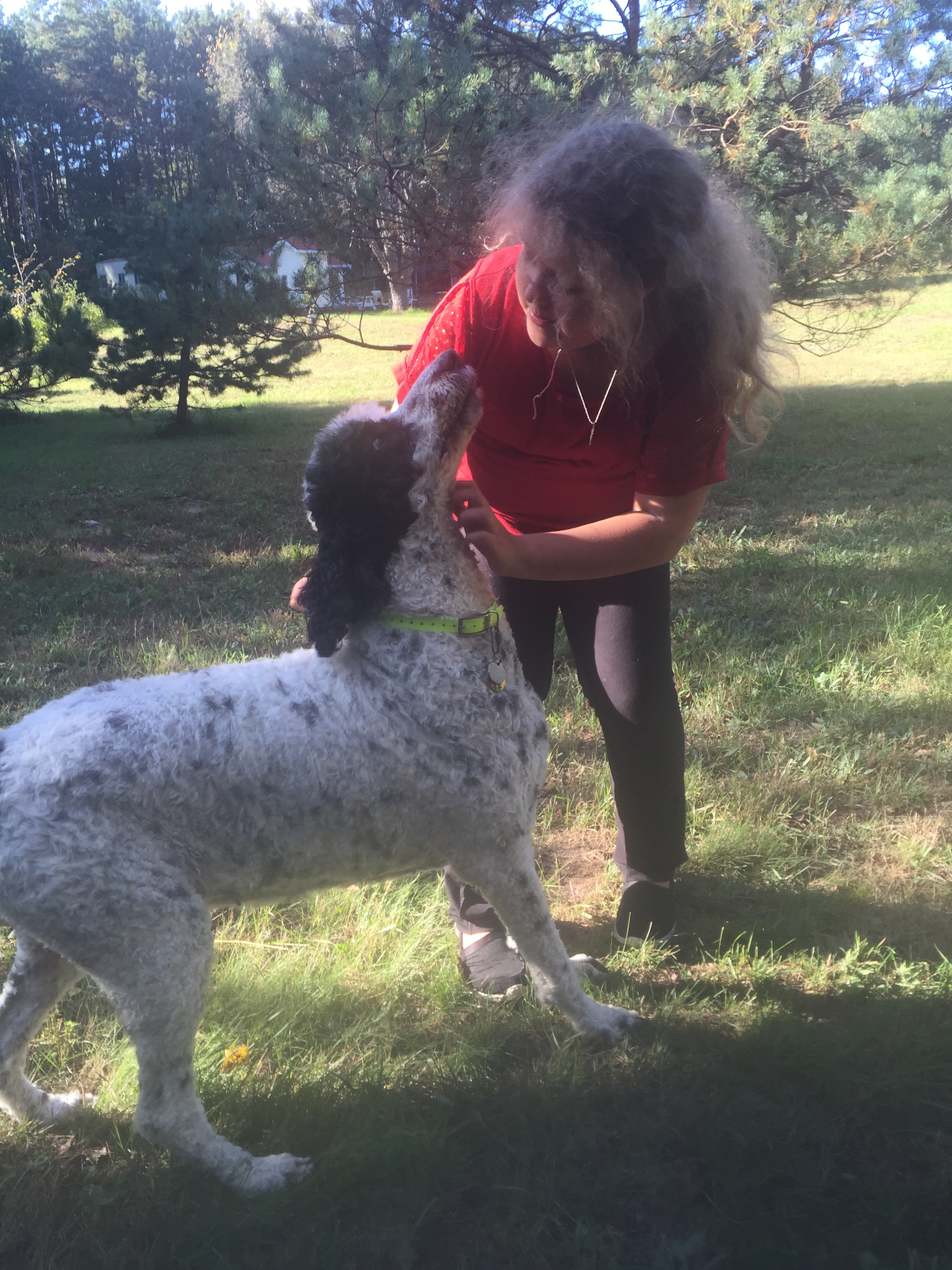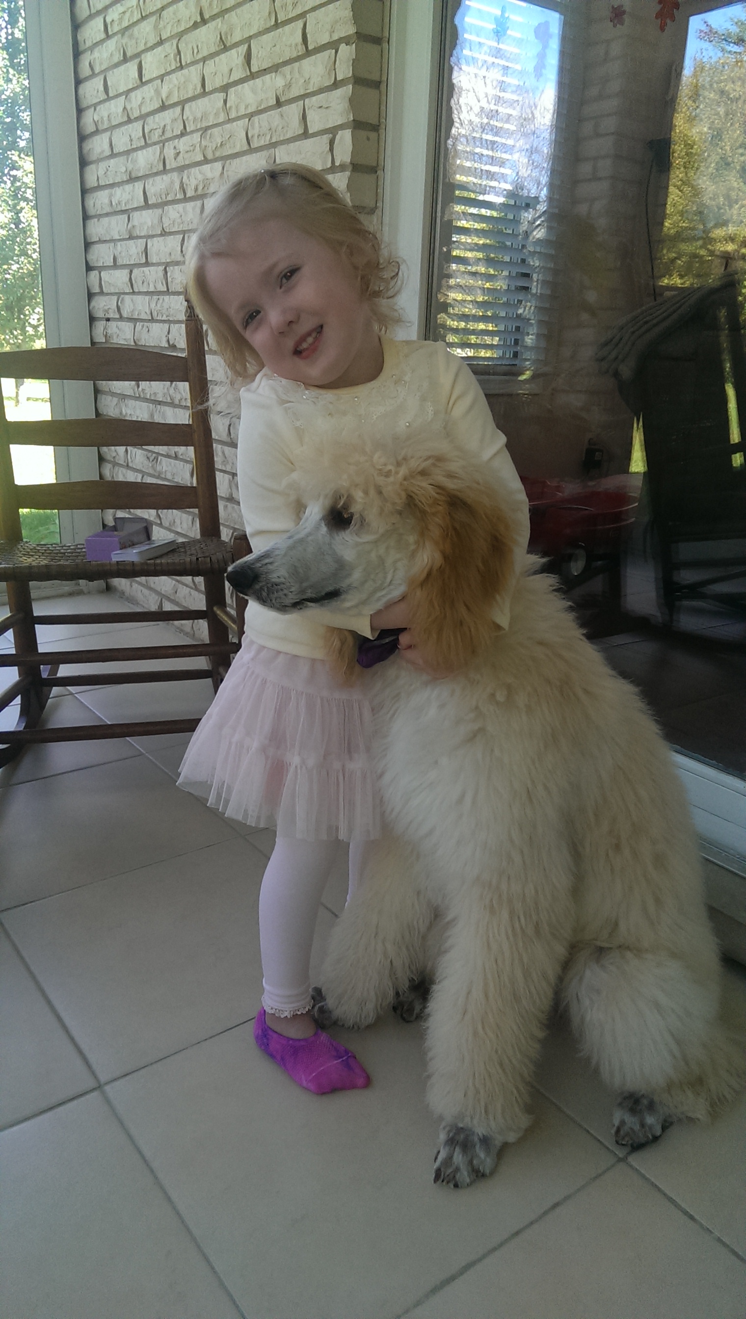 Sugar/Rolo and her little human haha Love her “help me” look😀 What a beauty Rene and Wally’s GLEE baby is😀 All’s well here. Fall is definitely setting in. I’ve been trying to go to the park a little later so grass isn’t so wet. Girls need baths but between the park and the construction mess at the new house they will stay clean about 12 hours. The best part of our daily swims! Sparkling clean pets!!😀